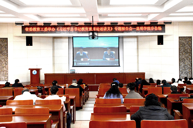 报告会以线上、线下方式举行。省委教育工委、省教育厅全体干部职工,在昆高校的党委书记、校长共计300余人参加主会场报告会,全省教育系统12800余人分别在344个分会场参加学习。新葡萄8883官网AMG校领导,有关部门负责人,各二级学院、附属经开学校、附属幼儿园负责人,全体思政课教师在学校办公楼D区报告厅分会场,以观看视频直播方式参加学习。