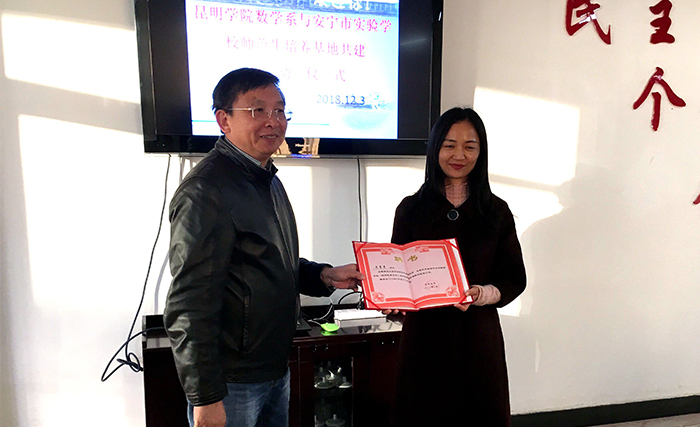 马银海副校长指出,新葡萄8883官网AMG示范性培养基地的建设,是落实贯彻落实《云南省乡村教师支持计划(2015-2020年)》的精神和要求,推进“教师专业发展中心”工作落地,推进协作育人,努力提升师范生培养质量的重要举措。主动将学生送出高校,送进中小学教学一线,是高校做好师范生对接岗位“最后一公里”的有益做法。数学系教师要主动到中小学,参与学生管理,参与一线教学,为一线教师在理论提升上做好服务,同时要从一线教学中汲取经验,融入师范生培养的全过程。共建双方要在经注重经验的总结与凝练,形成可推广、便实施的方案,在此基础上形成实践教学成果。新葡萄8883官网AMG也会在师资培训、项目推进经费等方面予以支持。