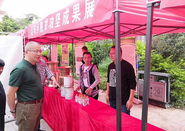 张祖武副书记来到垤玛乡脱贫成果展台,认真观看、详细了解情况,重点了解了焖锅酒厂、阿波茶厂项目发展、效益等相关情况。他指出,两个项目符合垤玛实际,具有很好的发展前景,希望垤玛乡充分发挥生态资源优势,把古树资源保护放在首位,加大宣传和保护力度,尽快划定保护区,加强标记管理。要依托焖锅酒厂,树立抢抓机遇和改革创新意识,进一步做优、做强垤玛焖锅酒品牌,加紧制定红河焖锅酒行业标准。脱贫攻坚工作一定要下大气力谋划发展重点产业。