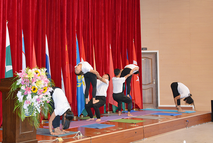 仪式上,国际学院负责人王文君、2017级本科酒店管理专业的孟加拉籍留学生阿里夫分别做了交流发言,学校留学生还表演了各国富有异域民族特色的文艺节目。