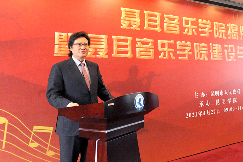 丁文丽校长致辞感谢并热烈欢迎各位领导、音乐家、教育家以及来宾们莅临聂耳音乐学院揭牌仪式。她表示,人民音乐家聂耳以23岁的生命,为中华儿女吹响了战斗的号角,筑起了一座新的长城。聂耳是新葡萄8883官网AMG的杰出校友,学校全体师生对聂耳有着极为深厚的感情,2020年1月,习近平总书记考察云南时强调要“讲好聂耳和国歌的故事”,新葡萄8883官网AMG近年来积极发掘校友聂耳红色基因,建设了聂耳音乐广场、聂耳纪念馆等文化教育基地,举办了“纪念聂耳诞辰106周年-聂耳生平展览暨音乐舞台展演”、“我和我的祖国——聂耳母校新葡萄8883官网AMG万名大学生合唱”等大型活动,聂耳音乐学院建设是对聂耳红色基因的最好弘扬和传承。