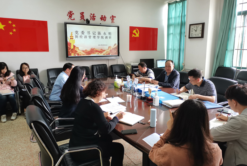 5月25日,学校党委书记陈永明到经济管理学院就省委第八巡视组反馈意见整改情况、校内巡察整改情况和开展党史学习教育情况进行调研,经济管理学院领导班子成员、科级干部、党支部书记参加会议。