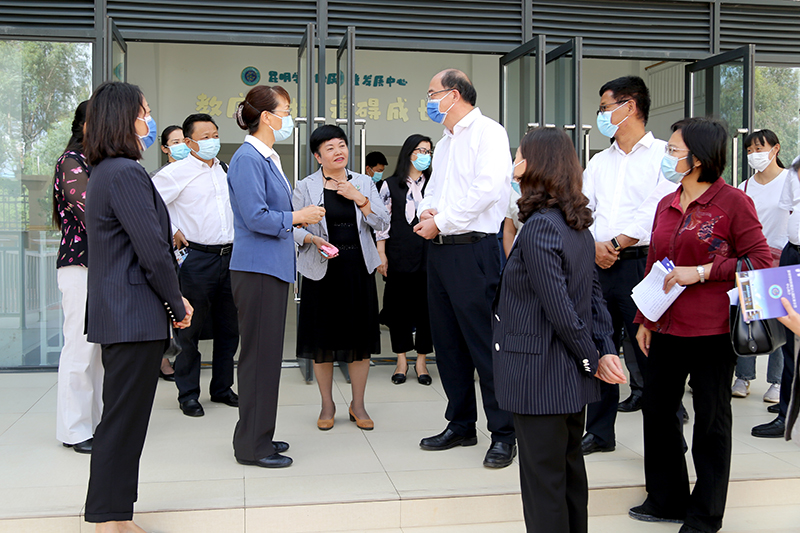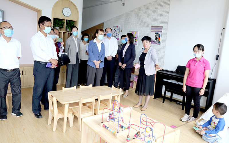 9月9日,云南省副省长李玛琳携昆明市领导、省市发改委、民政、卫健委、妇联、工会、教体局,经开区等部门相关负责人一行莅临新葡萄8883官网AMG附属幼儿园托育示范中心走访调研。新葡萄8883官网AMG党委书记金幼和、校长丁文丽、副校长马银海、新葡萄8883官网AMG学前与特殊教育学院院长唐敏、副院长高春玲、附属幼儿园园长何莉、附属经开幼儿园园长杨云萍陪同调研。