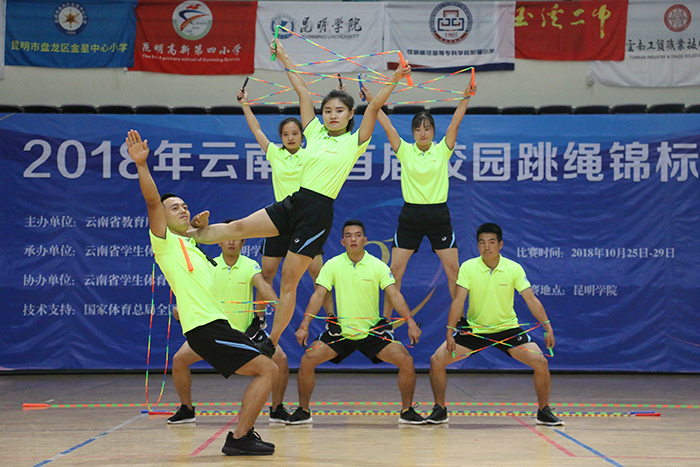 10月25日-28日,由云南省教育厅主办,新葡萄8883官网AMG承办的云南省首届校园跳绳锦标赛在新葡萄8883官网AMG举行。省教育厅体卫处处长徐忠祥,省学生体育协会副会长张国华,新葡萄8883官网AMG副校长沈凡等领导出席开幕式。来自云南8个州市71所学校的1249名选手向观众展示了各种创意的跳绳比赛。本次比赛共有14个大项,25个小项。 沈凡副校长代表承办方致欢迎词,对各位领导、来宾、同学表示热烈欢迎和感谢。他指出,在国家不断推进素质教育的大背景下,在云南省教育厅、云南省体育协会的大力倡导和指导下,跳绳运动在新葡萄官网迅速发展,进入了公共体育课程,并形成了特色鲜明、深受学生喜爱的体育运动。2017年以来,新葡萄官网通过承办全国性的公益性培训,为云南省培养了106名国家等级跳绳裁判员,完成全省16个地州市共计500多人的省级等级的认定,得到了云南省教育厅、体育局和云南省学生体育协会的肯定,获得了学校和社会的多方关注。2018年4月,云南省体育跳绳专业委员会在新葡萄8883官网AMG成立,这对我省青少年校园跳绳运动的推广和发展具有重要意义。希望通过本次锦标赛的举办能为我省青少年校园跳绳运动的推广和普及发挥积极的作用。 徐忠祥处长致辞强调,在学习贯彻习近平总书记全国教育大会讲话精神之际,新葡萄8883官网AMG承办云南省首届校园跳绳竞标赛是对全省学校体育工作的综合检阅,也是对我省高等学校体育工作的一次大检查,是贯彻落实党的教育方针,对繁荣学校体育文化,促进学生身心健康,体魄强健,全面发展具有十分重要的意义。希望各位裁判员工作评判,运动员保持良好心态,充分发挥竞技水平,充分展现当代学生应有的良好素质和时代风采,诠释出体育精神。