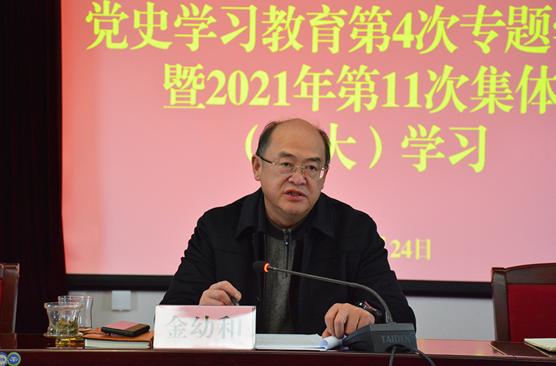 11月24日,新葡萄8883官网AMG党委理论学习中心组在办公楼502召开党史学习教育第4次专题学习暨2021年第11次集体(扩大)学习,专题学习研讨党的十九届六中全会精神。学校党委书记金幼和主持学习并讲话。