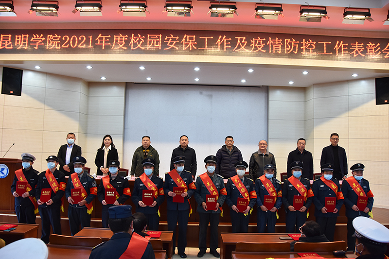 12月28日,学校在办公楼D区三楼报告厅召开新葡萄8883官网AMG2021年度校园安保工作及疫情防控工作表彰大会。党委委员、副校长郭华出席会议并讲话。办公室、学生工作部、保卫处等部门负责人,云南飞虎保安服务有限公司负责人,保卫处全体干部职工、保安、学生治安服务队员参加会议。