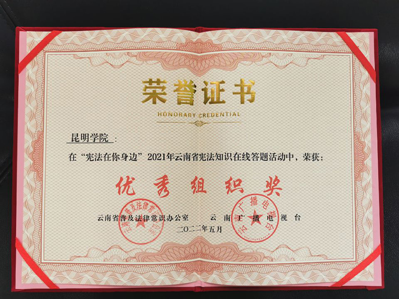 近日,云南省普法办、云南广播电视台联合组织开展的“宪法在你身边”宪法在线答题活动圆满结束,新葡萄8883官网AMG荣获优秀组织奖。