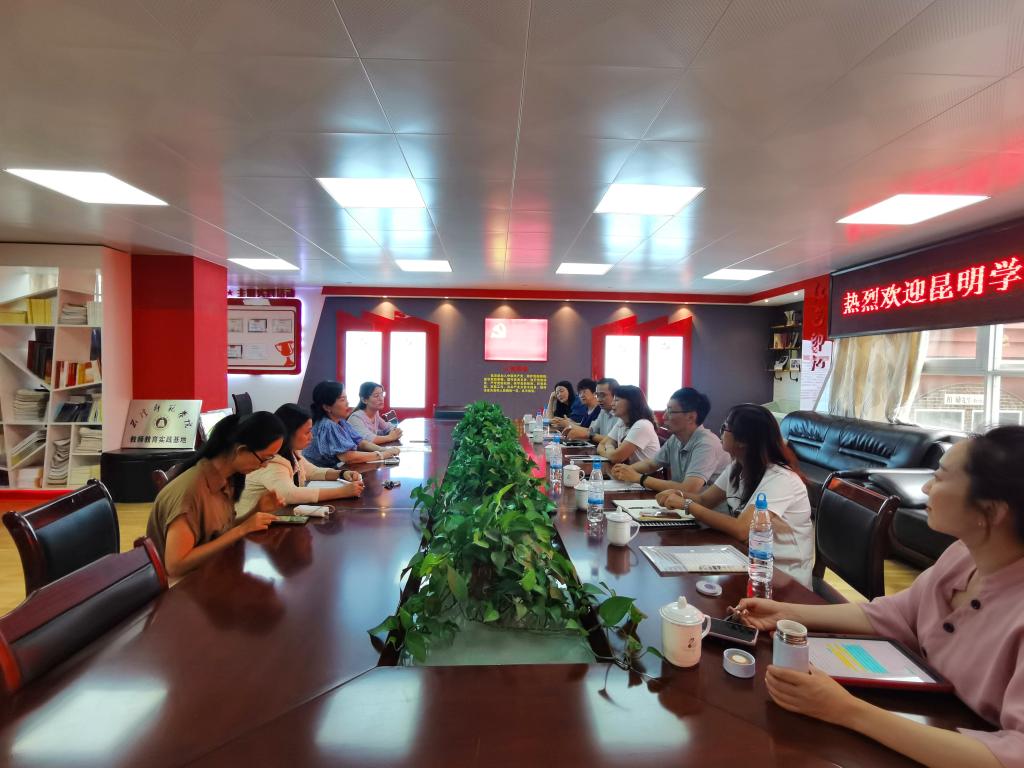 7月7日,李莉副书记带队到五华区长春小学调研洽谈工作,携手挖掘红色文化资源,共同讲好“聂耳和国歌的故事”。长春小学校长刘春、德育副校长杨蕊及相关部门人员热情接待调研组一行。新葡萄官网宣传部、学生工作部、马克思主义学院、音乐舞蹈学院等部门人员参加调研。
