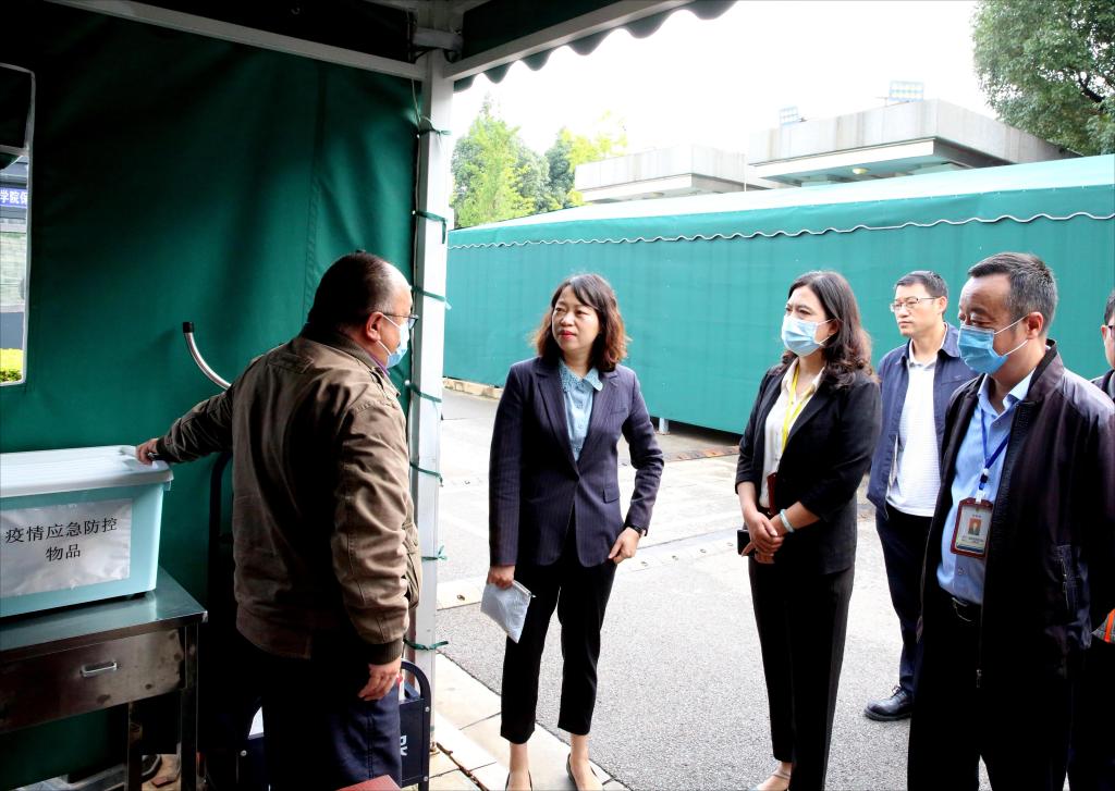 会前,丁文丽一行到学校校门、学生宿舍、食堂、校医院等重点区域,现场查看疫情防控、宿舍管理、后勤保障、校园卫生环境等情况,对存在的问题提出整改要求。
