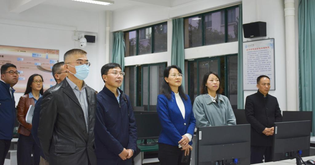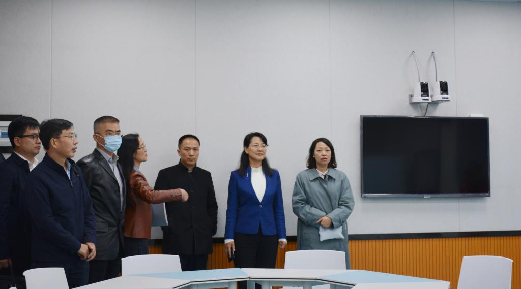 会后,丁文丽陪同来宾一行参观了新葡萄官网经济管理学院(自贸学院)证券投资仿真实验室、财务管理ERP综合模拟实验室、国际贸易实验室和智慧教室,并在聂耳像前合影留念。