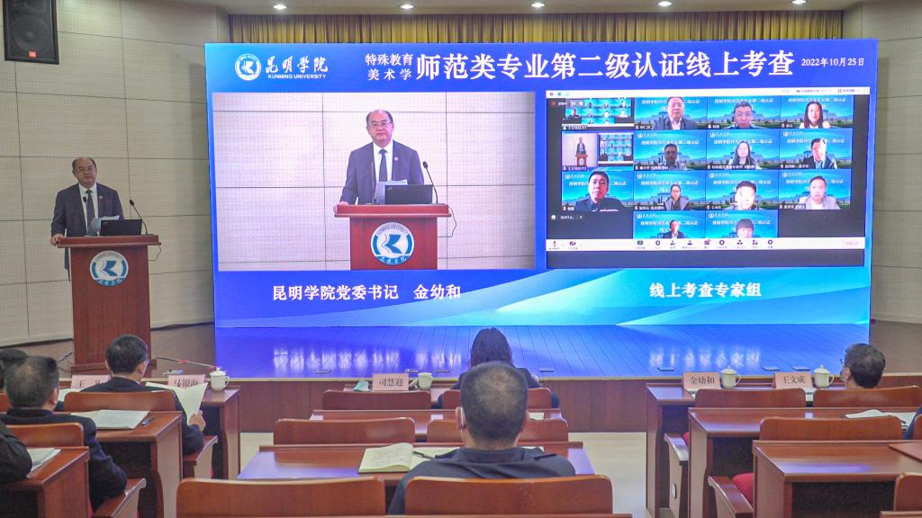 10月25日上午,学校召开特殊教育、美术学师范类专业第二级认证线上考查专家组见面会。会议由联合认证专家组组长兼特殊教育专家组组长、重庆师范大学重庆课程与教学研究基地主任申仁洪教授主持。美术学专家组组长、大连大学教育学院院长庞国彬教授等12位专家,云南省教育评估院相关负责人,学校党委书记金幼和、校长丁文丽,校领导王文成、马银海、王凡、罗荣辉出席会议。会议以视频方式举行。