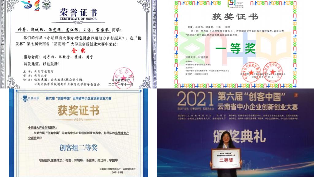 积极探索研究生培养模式改革,构建产教融合贯穿全程的产教协同育人机制,通过设立“产业(行业)导师”和创建科技小院、设立研究生工作站等,吸引行业企业参与人才培养,引导研究生和导师参与企业研发项目。校企共建云南香格里拉奇异莓等7个国家级科技小院,产教融合带动示范作用充分发挥。学生在导师指导下,负责或参与省级以上纵向研究课题22项(国家自然基金项目1项)、发表论文33篇(SCI核心期刊6篇)、获专利36项;荣获“中国研究生乡村振兴科技强农+创新大赛科技作品”一等奖、“2022年智慧农业创意大赛” 特等奖。