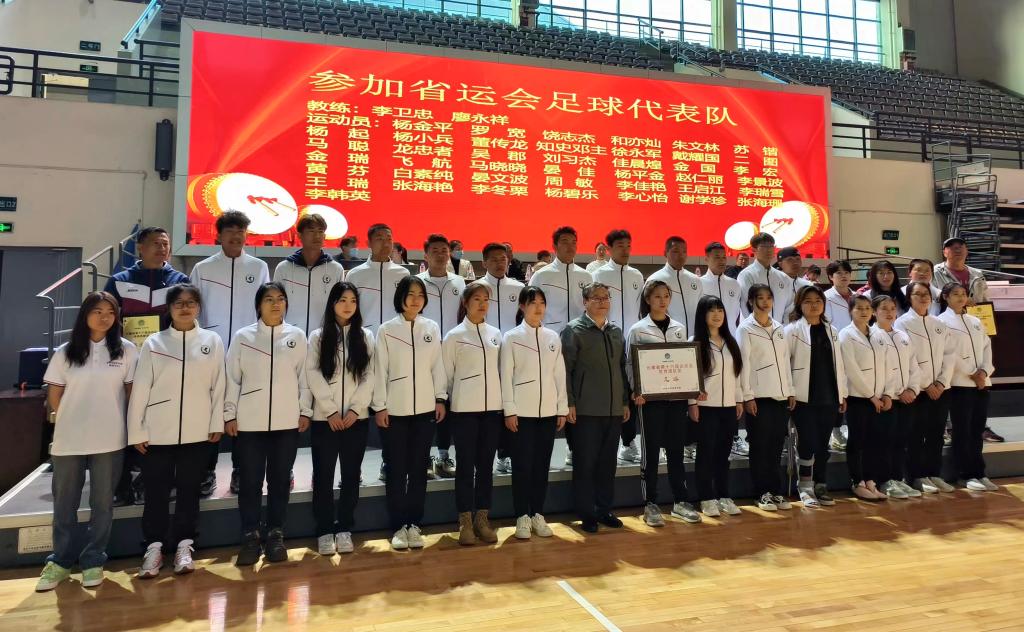 王文成副书记表示,新葡萄8883官网AMG代表团在跳绳、体育舞蹈项目上持续保持全省领先,在足球、田径、篮球、网球、羽毛球等项目上披金挂银,彰显学校体育在新征程上的新成就,必将激励广大师生踔厉奋发、勇毅前行。并以新葡萄官网女子足球以不败战绩获得甲组冠军为例,阐述了五育并举、全面育人和以全民健身促进全民健康的重要意义,为在场师生讲授了一堂思政课。王文成充分肯定了体育学院在大学体育课程“俱乐部制”教学模式下“教会、勤练、常赛”取得重要成果的实施路径和经验,殷切期望体育学院广大师生不忘初心、牢记使命,珍惜荣誉、再接再厉,为实现学校第二次党代会提出的“以体健人”“建设高水平校园体育文化中心”的学校体育目标任务贡献力量。