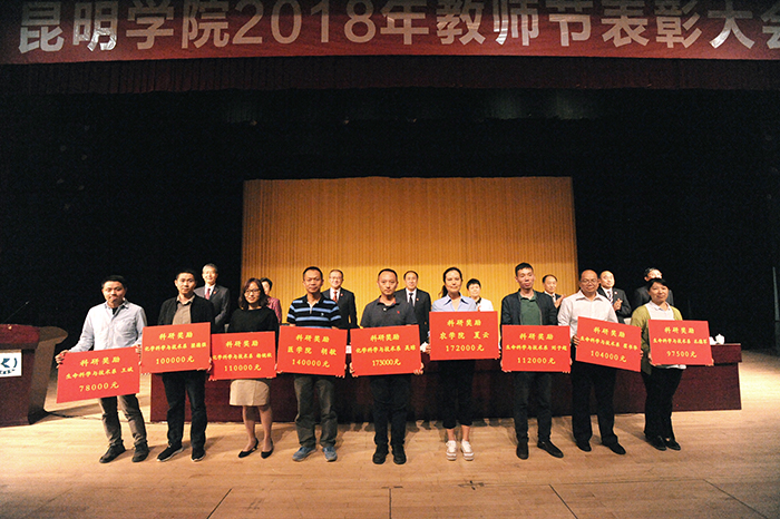 陈永明书记强调,在习近平新时代中国特色社会主义思想和党的十九大精神的指引下,学校始终坚持依靠广大教职工,紧跟高等教育改革的步伐,抢抓发展机遇,奋力推进学校又好又快发展,经过长期努力,学校迈入了全面推进“转型发展、内涵提升、重点突破”及“双一流”建设的快车道,是你们的励精图治,敢于担当,让昆院在全省同类院校中脱颖而出,取得硕士学位点和硕士授权单位,率先抢占了发展的制高点;是你们的奋勇争先,踏实精进,让昆院成为全省应用型发展的示范院校,荣膺云南省应用型高校联盟理事单位;是你们的坚韧图强,矢志不渝,让昆院续创全国文明单位成功,巩固和捍卫了昆院精神,让昆院文化薪火相传;正是学校老师们的志存高远,低调务实,让昆院坚定了扎根红土大地办全国同类高校领先、办学特色鲜明的综合性应用型大学的信念。