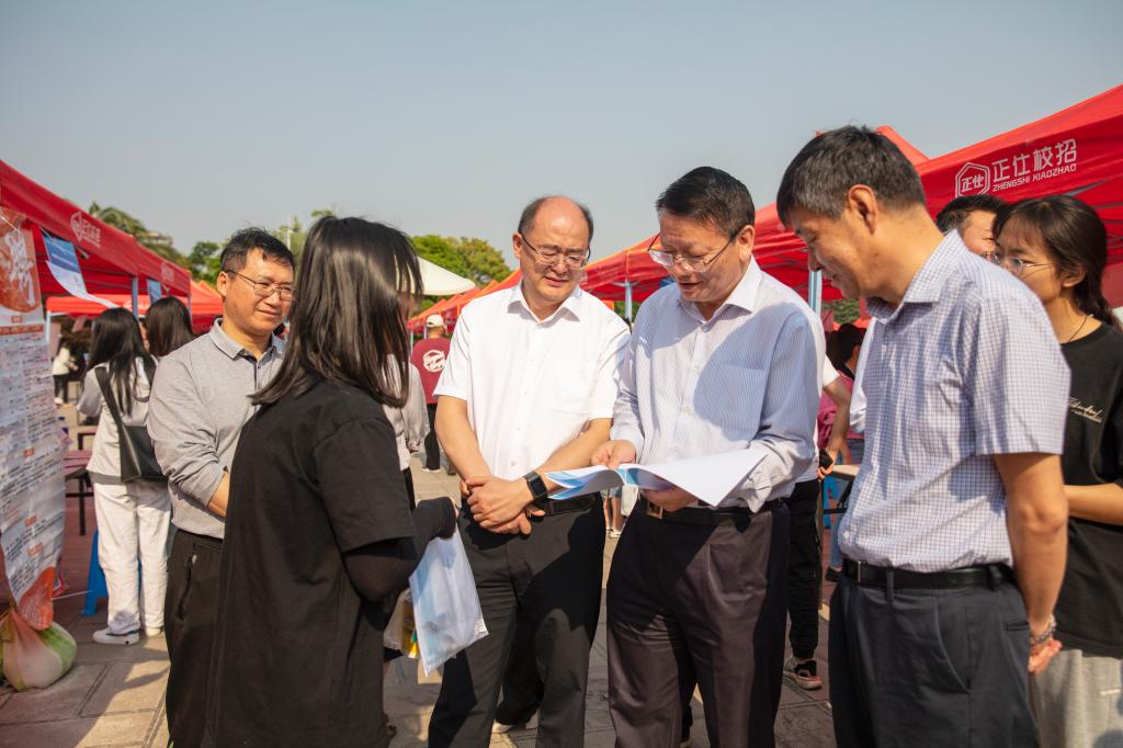 云南省委教育工委副书记、省教育厅党组成员陈世波在学校党委书记金幼和的陪同下,到招聘会现场,与师生、用人单位亲切交谈,了解学生应聘就业情况。