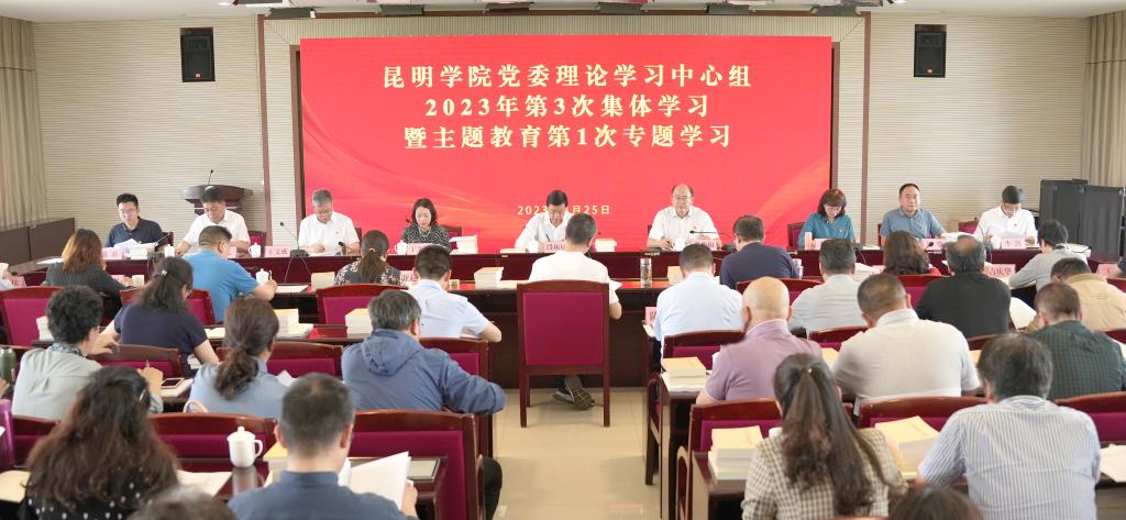 4月25日下午,学校党委理论学习中心组举行2023年第3次集体学习暨学习贯彻习近平新时代中国特色社会主义思想主题教育第1次专题学习,聚焦习近平总书记致云南大学建校100周年贺信精神和中央主题教育工作会议精神,深入开展学习研讨交流,为高质量开展好主题教育奠定坚实的思想基础和理论基础。