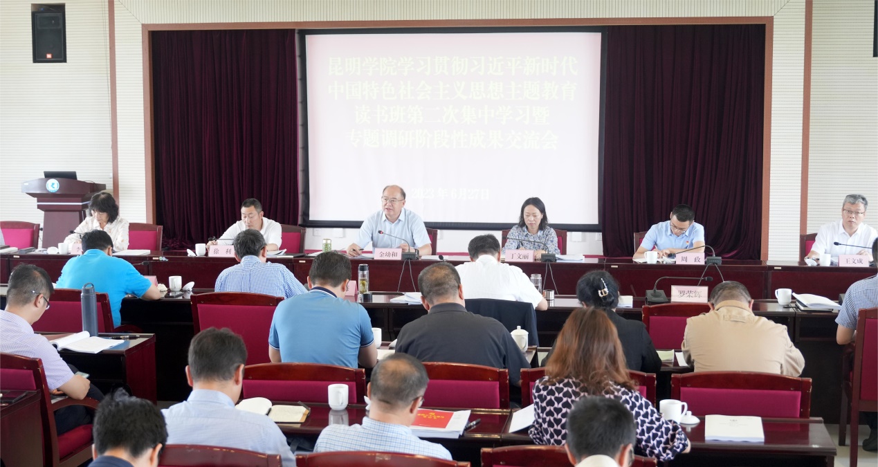会上,金幼和对学校主题教育读书班第二次集中学习进行总结。本次读书班,严格按照主题教育的安排,在省委第十九巡回指导组的精心指导下,以“深入学习领会习近平总书记关于中国式现代化的重要论述,奋力谱写中国式现代化的云南篇章”为主题,共用5天时间,安排了理论中心组学习、专题辅导、党委书记讲专题党课、支部主题党日、实地调研、集中自学、研讨交流等学习活动。