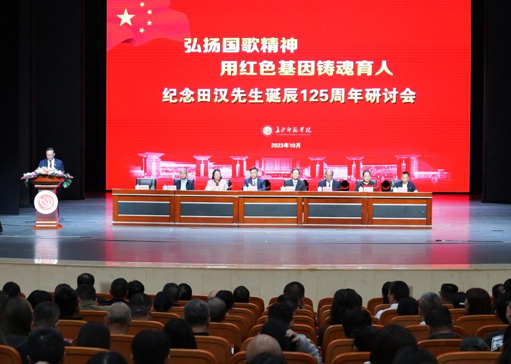 金幼和代表学校对长沙师范学院成功举办纪念田汉先生诞辰125周年研讨会活动表示祝贺。他表示,两校自去年签订共同讲好“国歌的故事”合作框架协议以来,互访交流频繁,共同组织的活动也取得了很好的效果,下一步应该更加紧密地持续深化各个方面的合作交流。长师的办学理念、办学思路和一些创新发展的举措值得我们深入的学习和借鉴,希望两校今后以“国歌”为纽带,在人才培养、师资队伍建设、服务社会等方面展开深度合作,推动两校育人资源共享共建,促进教育高质量发展。