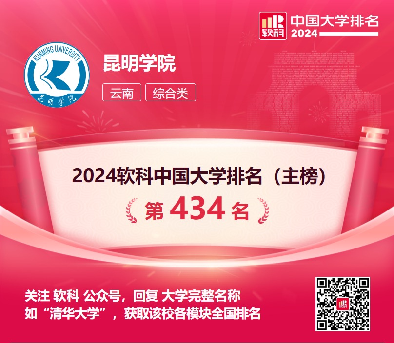 近日,高等教育专业评价机构软科发布“2024软科中国大学排名”,新葡萄8883官网AMG主榜排名全国第434名,比去年提升63位,为云南10所位列主榜500强高校之一,是云南省排名位次年度提升幅度最大的高校。