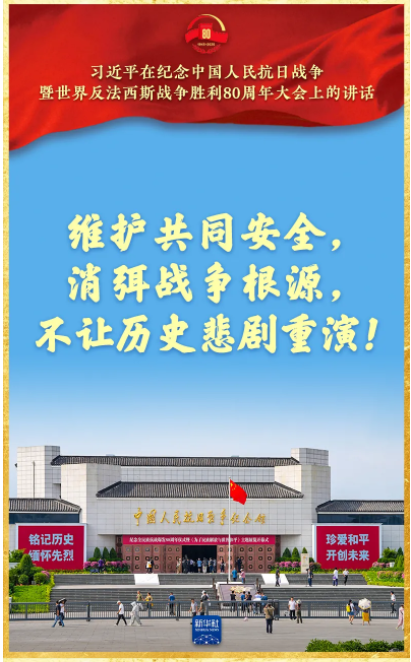 观看了中国人民抗日战争暨世界反法西斯战争胜利80周年纪念活动直播,聆听了习近平总书记的重要讲话,看到了中国军队的超强排面,看到了血火淬炼的中华民族魂,我感到激动澎湃,一代人有一代人的使命与责任,在和平年代的今天,我将传承伟大抗战精神,做到守岗有责,以坚守与奉献维护校园安全稳定。