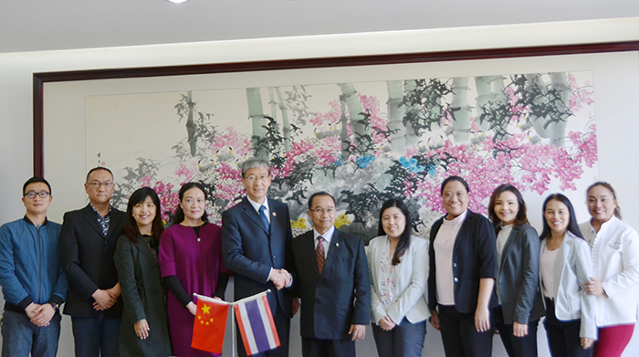 3月19日,泰国南邦皇家大学(Lampang Rajabhat University)校长 Somkiat Saithanoo先生、管理科学学院院长Natthanan Thitiyapramote女士、人文与社会科学学院副院长Saowaree Boonsa女士等一行7人来访新葡萄官网。学校副校长董建华热情接见了Somkiat Saithanoo校长一行,新葡萄官网人文学院和国际交流合作处相关人员参与了会谈交流。