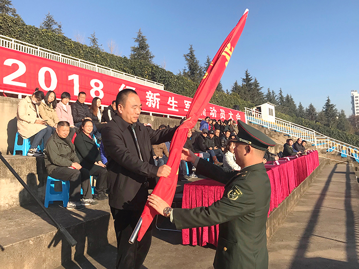 2019年1月7日上午,新葡萄官网2018级新生军训开训动员大会在田径运动场举行。学校副校长郭华出席大会并作开训动员讲话。学校党办、校办、宣传部、学生处、保卫处、团委、各院系等单位的负责人参加了动员大会。 郭华副校长指出,“军训”作为大学教育的第一课,是学校人才培养的重要环节,是塑造精神气质的有效载体,也是同学们人生旅途中又一个新起点。大学生军事训练的主要任务是训思想、训纪律、训作风、训精神,练技术,练体力,练意志,练品质,这既是学习的过程,也是历练的过程,更是拼搏的过程。并强调,为保证本次军训有序推进,取得实效,学校将严格按照《中华人民共和国国防教育法》、《兵役法》等相关法律法规要求,集中开展为期13天的军事理论课和军事技能训练课学习,内容涉及国防知识、军事理论,队列训练、擒敌战术,战伤救护、内务卫生等训练科目。时间紧,任务重,强度大,挑战多,是对每一位参训同学的全方位考验,军事训练既发挥着锻炼身体素质,磨练意志品格的良好作用,更是同学们今后良好的生活和学习习惯的养成基础。 郭华副校长强调,军训是学习,军训是磨练,军训是收获,军训更是考验。同学们要上好军训这堂课,习得良好的集体协作精神,把小我融入到大我之中,在青春的征途上不断奋斗启航;要虚心求教,勤学苦练;要服从指挥,令行禁止;要团结协作、保障安全。 郭华副校长向军训团授旗并宣布新葡萄8883官网AMG2018级新生军事训练开训。