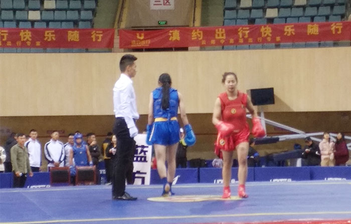 12月15日,新葡萄官网体育学院陈禹辛同学在省教育厅主办的云南省第二届大学生武术散打锦标赛中勇夺女子冠军。