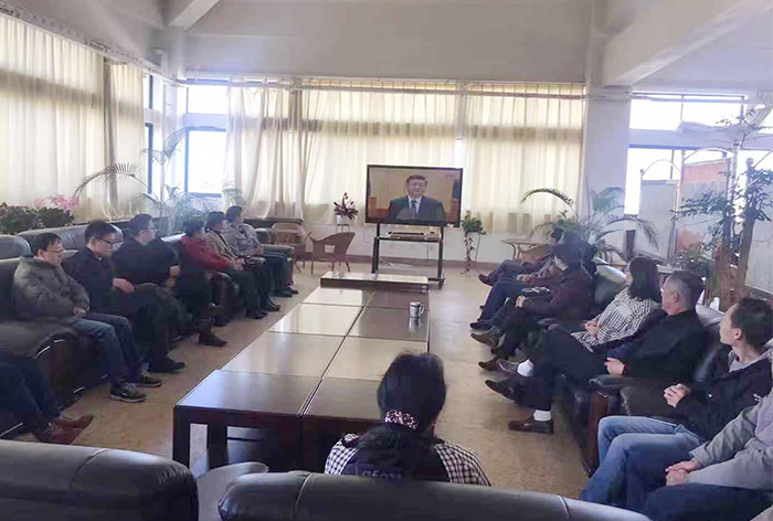 学校在校校领导、机关中层干部和学生干部代表在办公楼502会议室集中收看大会实况直播,学校各学院、各单位组织师生员工在会议室、办公室、教室等地收听收看直播,并及时开展讨论。