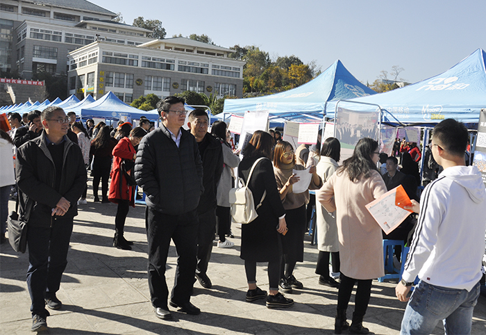 12月21日,云南省2019届综合类高校毕业生双向选择洽谈会在新葡萄官网成功举行。省委高校工委副书记陈世波,学校党委书记陈永明、副校长郭华,云南省大中专毕业生就业服务中心主任周舟及昆明市就业服务局、昆明市人才服务中心领导深入招聘会现场了解情况、指导工作。 本次招聘会由云南省教育厅主办,新葡萄8883官网AMG、红河学院、文山学院、云南省大中专毕业生就业服务中心共同承办。旨在积极拓宽我省毕业生就业创业渠道,努力搭建规范安全的就业平台,实现我省高校毕业生更高质量和更充分就业。 学校本着“控制规模、提升质量”的工作原则,充分利用政府、行业资源,积极开拓毕业生就业市场,各院(系)通过“走出去、请进来”等形式,主动邀请用人单位参加本次招聘会。根据新葡萄官网2019届毕业生专业特点和求职需求,最终遴选出包括云南云内动力集团有限公司、昆明南疆制药有限公司、中国光大银行股份有限公司昆明分行、沈机集团昆明机床股份有限公司、昆明洲际酒店、昆明市第一人民医院、昆明市卫生学校等400多家企业参会(其中省外参会单位89家),提供就业岗位近16000多个,招聘会现场分为各区政府提供的就业单位、机电建筑、经济管理、旅游管理、文教卫生、农林渔牧等多个专区,方便毕业生根据自己所学专业选择对口企业应聘。 招聘会现场秩序井然、气氛热烈。现场宣传展板醒目的宣传党的十九大报告提出的就业方针政策和国家促进2019届毕业生一系列政策、措施。招聘现场来自省外高校17所、省内高校20所近4000名毕业生积极主动投递求职材料,踊跃与应聘单位交流洽谈,各院(系)领导、辅导员、班主任现场指导毕业生就业,帮助毕业生及时解决应聘过程中出现的问题。据统计,毕业生现场投档数2367份,基本达成就业协议数629人。学校将进一步推进就业工作,继续为2019届毕业生就业提供优质指导、优质帮扶、优质信息和举办一系列专场招聘会等多项服务,同时希望广大毕业生树立信心,主动就业,为顺利走好人生职场的第一步做好充分的准备。