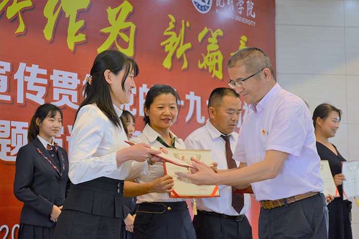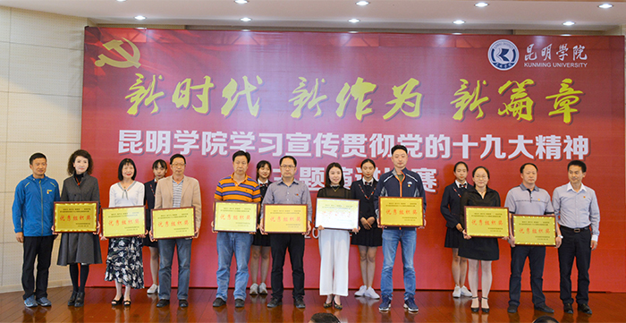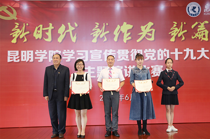 6月6日,“新时代 新作为 新篇章”——新葡萄8883官网AMG学习宣传贯彻党的十九大精神主题演讲比赛决赛在办公楼D区三楼报告厅举行。学校党委书记陈永明,党委副书记张祖武出席活动并为获奖选手颁奖。云南省演讲学会会长李志勤、常务理事辛勤、赵志刚应邀担任评委。 来自学校基层党总支、直属党支部的23名选手,身着正装,声情并茂围绕党的十九大精神,结合个人本职工作、所思所学,用激情昂扬的演讲状态、真实鲜活的工作事例和富有创新的舞台表现,从不同角度讲述了高校教职工的“新时代、新气象、新作为”,畅谈对党的十九大精神的深刻理解和认识,讴歌了党的光辉历程,抒发了对党的炙热情怀,展示了培养中国特色社会主义建设者和接班人的责任与担当精神。选手们的精彩演讲赢得了现场听众的阵阵掌声和喝彩。 经过激烈角逐,来自农学院的杨伟、音乐学院的周丹、附属经开学校的赵无颜以高分同获一等奖,并分别包揽“最佳稿件奖”、“最佳风采奖”、“最佳创意奖”三个单项奖。