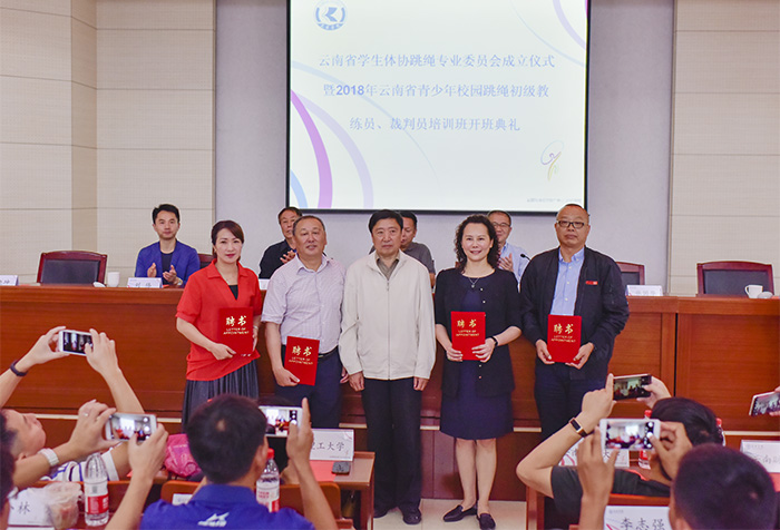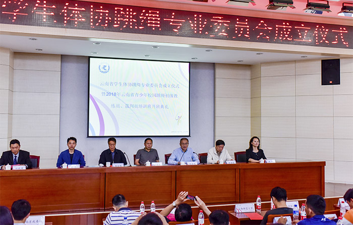 6月2日,云南省学生体育协会跳绳专业委员会成立仪式在新葡萄官网行政楼D区三楼报告厅举行。省教育厅体卫艺处处长徐忠祥、省学生体育协会会长姜征明、副会长张国华等领导莅临。学校党委副书记张祖武出席仪式并致辞,云南大学、昆明理工大学、云南师范大学、云南农业大学等在昆高校代表到会祝贺。