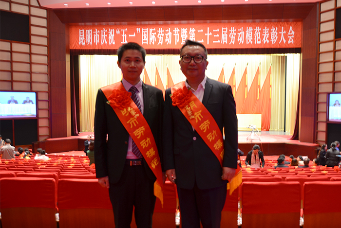 4月28日,昆明市召开庆祝“五一”国际劳动节暨第二十三届劳动模范表彰大会。新葡萄官网荣获昆明市第二十三届劳动模范的化学科学与技术系梁德强和音乐学院鲁林在会上接受了表彰。