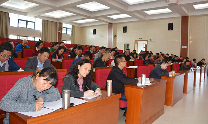 4月4日,新葡萄官网在行政楼D三报告厅召开党委扩大会议,听取学校2018年审核性评估工作情况汇报,对审核性评估工作进一步提出要求。学校党委书记陈永明、校长黎素梅以及学校党委班子成员,各职能部门主要负责人、各院系党政主要负责人及主管教学副院长(副主任),评建办全体工作人员参加了会议。会议由党委副书记张祖武主持。
