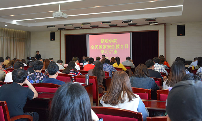 4月12日,昆明市国家安全局黄晓武处长应邀到校作《国家安全形势》专题讲座,学校国家安全人民防线建设小组副组长、党委副书记张祖武主持讲座,学校国家安全人民防线建设小组成员单位主要负责人、各院系副书记,辅导员和学生代表120余人聆听了讲座。 黄晓武处长强调了提高全民国家安全意识的重要性,从国家安全的内涵、我国当前面临的安全形势、国家安全的十一种安全观等方面给参会的师生详细讲述了国家安全教育的意义。黄晓武处长指出,当代大学生的国家安全意识急需加强,要构建学校、社会、家庭三位一体的国家安全教育体系。结合高校实际,国家安全工作要“立起来、活起来、实起来”,要深化国家安全意识,国家安全教育要与课程教育深度融合,运用多样化的教育模式把国家安全教育工作做出特色,入脑入心。并播放了国家安全教育警示宣传片,让与会师生更加直观的了解防谍反恐的重要性和紧迫性,树立总体国家安全观,巩固和增强维护国家安全人人有责的意识。 张祖武副书记讲话指出,牢固树立总体国家安全观,是实现中华民族伟大复兴的重要保障,建立健全国家安全人民建设防线,是贯彻和落实总体国家安全观的具体措施,我们必须不折不扣的贯彻落实党中央的决策部署,努力践行总体国家安全观。国家利益高于一切,国家安全工作重于泰山,高校是维护国家安全的重要力量,高校师生目前已成为敌对势力争取和拉拢的重要对象,各单位、各院系要深刻认识国家安全宣传教育工作的重要性,牢固树立“国家安全无小事”的观念和意识,增强国家安全教育的紧迫感和责任感。学校的国家安全工作是一项长期动态的工作,任重而道远,长期而艰巨,我们要以高度的责任心、强烈的使命感为保证,以建立长效国家安全管理机制为目标,清除工作中的盲点,认真维护国家安全,为促进学校的科学发展、转型发展、和谐发展、跨越发展做出应有的贡献。