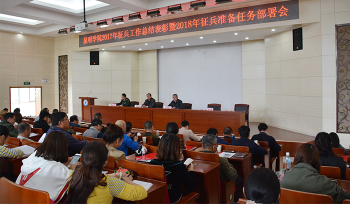 4月18日,新葡萄官网在行政楼D三报告厅召开2017年征兵工作表彰暨2018年征兵准备任务布置会。学校征兵工作领导小组组长、党委书记陈永明,官渡区人民武装部政委周文斌,党委宣传部、纪委办、教务处、学生处、武装部、招就处、校团委、保卫处负责人,各院系党总支书记及分管学生工作副书记,全体辅导员参加了会议。会议由学校党委副书记张祖武主持。 会议表彰2017年征兵工作先进集体和个人。美艺学院和旅游学院分别代表先进集体、优秀个人作交流发言。周文斌政委指出,大学生应征入伍是我国国防的需要,也是建一流军队的重要组成部分,提高官兵综合素质是加强国防事业力量的重要保障。兵源素质是提升部队素质和战斗力的基础,士兵素质的改善和提升才能更好的发挥现代化军事武装的效率,实现中国强军梦。 陈永明书记强调,征兵工作是事关国家安全稳定和军队现代化建设全局的重要工作,对打牢国防和军队现代化建设基础、促进国防建设和经济建设融合发展有着积极意义。军队人员素质的提升,是建设信息化部队,全面建成世界一流军队的有效保障。