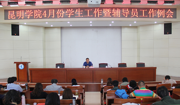 4月18日,学校在办公楼D区报告厅召开4月份学生工作暨辅导员工作例会。学校副校长郭华出席并主持会议,党委宣传部、教务处、学生处、武装部、招就处、团委、保卫处、后勤集团等职能部门负责人,各院系分管学生工作的党总支副书记、全校辅导员及学生处全体人员共100余人参加了会议。