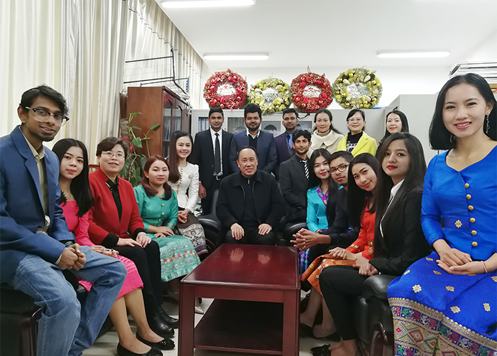 12月27日,陈永明书记、熊晶副校长到国际交流合作处召开留学生座谈会,并亲切慰问了来自孟加拉、老挝等国家的留学生代表。