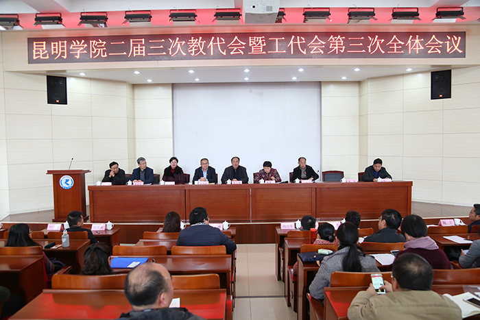 2017年12月25日下午,新葡萄8883官网AMG二届三次教代会暨工代会第三次会议在学校办公楼三楼D区报告厅隆重举行。新葡萄8883官网AMG第二届教代会暨工代会正式代表124人参加会议,各分工会主席和机关工会小组长列席会议。会议由黎素梅校长主持。
