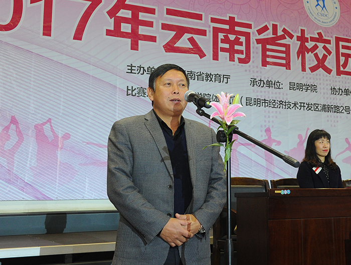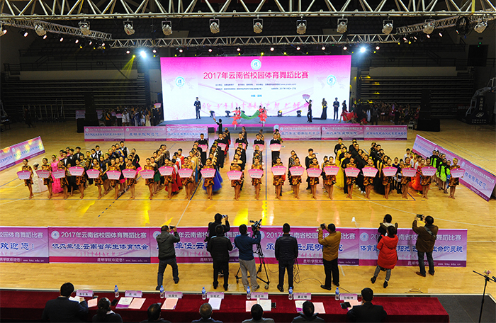 11月25日至26日,由云南省教育厅主办、新葡萄8883官网AMG承办、云南省学生体育协会协办的2017年云南省校园体育舞蹈比赛在新葡萄官网完美举行。来自全省50余所学校近2000余名参赛选手在多个舞种上展开激烈角逐,选手们通过创意的舞蹈竞技和表演,用体育舞蹈来展示当代学生的活力与风采。 省教育厅体卫艺处处长、省学生体育协会秘书长徐忠祥出席开幕式并宣布“2017年云南省校园体育舞蹈比赛”开幕,学校党委副书记张祖武代表承办方致欢迎辞,省学生体育协会会长姜征明、副会长张国华等领导参加开幕式。