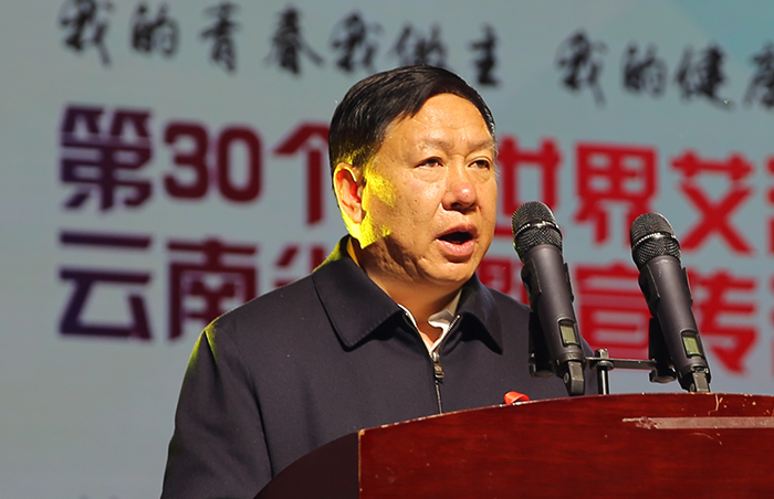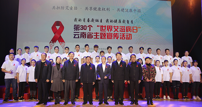 11月30日上午,由云南省防治艾滋病工作委员会主办、云南省防治艾滋病局、新葡萄8883官网AMG、云南省性病艾滋病防治协会承办的“我的青春我做主 我的健康我负责” 第30个“世界艾滋病日”云南省宣传活动启动仪式在新葡萄官网学生会堂举行。 云南省人民政府副省长陈舜,省政府副秘书长赵瑞君,省卫生计生委党组书记王灿平,省教育厅副厅长赵德荣,省性病艾滋病防治协会会长陈觉民,昆明市政府副秘书长王亚芳,学校党委书记陈永明, 长黎素梅等领导出席了启动仪式。省防艾委、市防艾委成员单位相关负责同志,我省高校防艾教育基地学生代表,我省医务人员、志愿者、农民工代表与新葡萄官网师生1300余人共同参加了本次活动。 学校党委书记陈永明代表承办方致辞。陈书记首先代表新葡萄8883官网AMG党政和全体师生向莅临新葡萄官网的各级领导、来宾表示衷心的感谢;向出席开幕式活动的各兄弟院校领导表示热烈的欢迎;向长期抗战在防艾工作第一线工作人员及志愿者们致以崇高的敬意。 陈书记指出“共担防艾责任,共享健康权利,共建健康中国”是我国今年世界艾滋病日宣传活动的主题。这一主题充分阐释了健康是促进人类全面发展的必然要求,也是广大人民群众的共同追求。 陈书记介绍“一直以来,新葡萄官网高度重视艾滋病的防治与宣传教育工作,初步形成了‘成立领导小组统筹抓,推进三级联动层层抓,发挥三支队伍作用持续抓’的工作局面。” 陈书记表示新葡萄官网在艾滋病防控宣传教育工作取得成绩的同时,也清醒的意识到防艾治艾总体情况还不容乐观,防艾治艾工作还任重道远。 云南省卫生计生委党组书记王灿平同志致辞。首先,王灿平书记代表云南省尾声计生委对新葡萄8883官网AMG以及有关部门和单位为本次活动的顺利举行提供的支持和帮助表示感谢。接着,王书记针对云南省防治艾滋病的整体情况进行了介绍,特别强调青少年要加强个人保护意识和风险识别意识。针对大学生艾滋病病毒感染率的高发,云南省教育厅,云南省卫生计省委定期召开省高校艾滋病报告会,积极开展各类教育宣传活动以及艾滋病检测活动。 继王灿平书记致辞,围绕本次世界艾滋病日云南省宣传活动的主题“我的青春我做主 我的健康我负责”,新葡萄8883官网AMG各院系为来宾们奉上了精彩的文艺节目。由新葡萄官网体育学院来的体育舞蹈《青春之舞》动感十足,展现青年们的热情和活力。