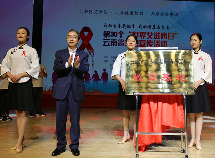 由新葡萄8883官网AMG社管学院带来的看照片讲故事《用爱牵起你的手》向观众们展示了三个有关艾滋病的故事。 在歌舞灯光和精湛的文艺演出推进高潮之际,云南省副省长陈舜为我院“云南省禁毒防艾宣传教育基地”揭牌,并与参会嘉宾以及大学生志愿者代表共同按手印墙,为本次世界艾滋病云南省主题宣传活动启动仪式画上了完美的句号。 随后,云南省疾病控制中心专家安晓静为同学们讲授《青少年艾滋病防治专题》的专题讲座。