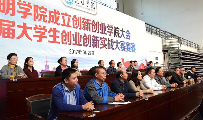 10月27日下午,新葡萄官网在体育馆举行创新创业学院成立大会暨首届大学生创业创新实战大赛复赛。校长黎素梅、副校长郭华,省教育厅学生处处长方伟,云南省大中专毕业生就业服务中心副主任周舟,新葡萄官网相关职能部门负责人、各院系党政负责人,参赛队及学生代表参加了大会并现场观看了复赛项目作品。