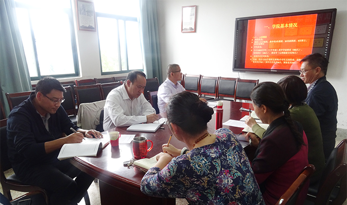 沈中灿书记代表学院向陈书记一行汇报了学院整体情况和党建工作展开情况。沈书记从师资队伍、办学规模、学科专业结构和发展水平,党政组织结构和师生党员状况等方面介绍学院发展状况;从党总支认真履行全面从严治党和管党治党主体责任,围绕中心、发挥党组织党员堡垒和先锋模范作用,突出重点、抓好主业三方面汇报党建工作情况。重点汇报了学院党总支在创建一流党建中打造“仁爱团队”、“融合教育专业化团队”、“国培团队”、“大学生创新创业团队”的做法。
