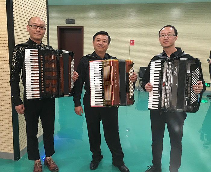 在18日举行的中国第五届聂耳音乐(合唱)周“聂耳颂歌——2017昆明聂耳音乐节开幕式大型交响音乐会”上,新葡萄8883官网AMG室内乐团的音乐学院廖一瑄副教授、马宏援老师以及学前与特殊教育学院苏剑老师,与昆明交响乐团及中国国家交响乐团的两位歌唱家合作演奏夏良先生改编的《滇池圆舞曲》,这是手风琴首次与交响乐团共同奏响云南大剧院,而手风琴这件乐器的加入也赋予这首圆舞曲新的生命。