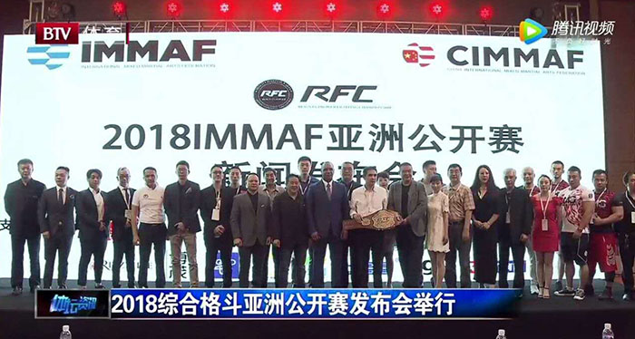 7月21日, “2018IMMAF亚洲公开赛新闻发布会”在北京举行, IMMAF(国际综合格斗联合会) CEO Dengisn White先生正式宣布2018年亚洲公开赛在中国举办,并正式授权给CIMMAF(国际综合格斗联合会) 承办此次赛事。这是中国首次举办这类赛事,将会给CIMMAF带来世界级的理念,包括选手、裁判员、教练员、医护人员等从事MMA运动的培训体系,并将指导建设高规格的培训场地,训练场馆及赠与CIMMAF珍贵的教学影像资料。