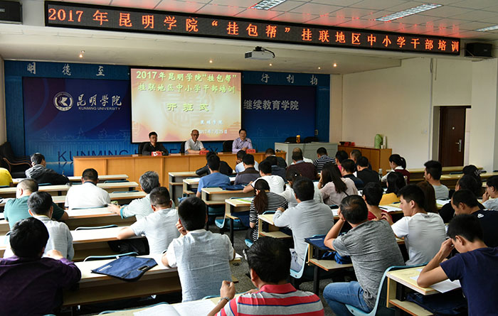 7月25日至29日,2017年新葡萄8883官网AMG脱贫攻坚“挂包帮”挂联地区中小学管理干部培训班在昆师路校区继续教育学院举办。新葡萄8883官网AMG对外合作与扶贫办公室副主任马加升、继续教育学院主持工作副院长张培宏参加了25日的开班仪式。