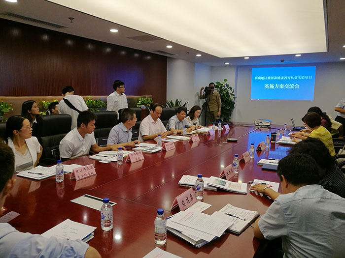 旅游和健康教育扶贫实验项目的院校,参加了在北京教育部学校规划建设发展中心召开项目实施方案最后的评审答辩和交流会。中心主任陈锋出席交流会,产教融合发展研究院常务副院长单铁军主持会议。新葡萄官网旅游学院田芙蓉院长(项目副组长)作为项目代表在会上进行了交流发言和答辩,得到了与会专家的一致好评。