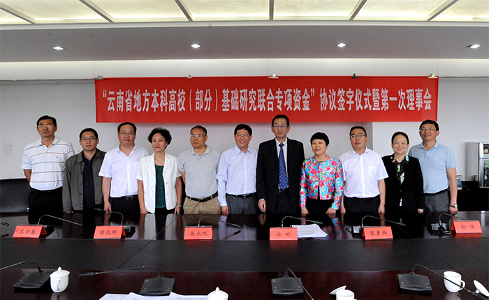6月26日,“云南省地方本科高校(部分)基础研究联合专项资金”协议签字仪式暨第一次理事会在新葡萄官网办公楼411会议室举行。云南省科技厅厅长徐彬,省科技厅基础研究处处长张红云、调研员石晓红,省教育厅科技处处长白玉兵,新葡萄8883官网AMG党委书记陈世波、校长黎素梅,曲靖师范学院副校长张永刚,红河学院副校长彭强,大理大学副校长褚远辉,玉溪师范学院副校长苏丽春,楚雄师范学院副校长陈颖,保山学院副书记黄鹤平以及7所高校科研处负责人参加了会议。