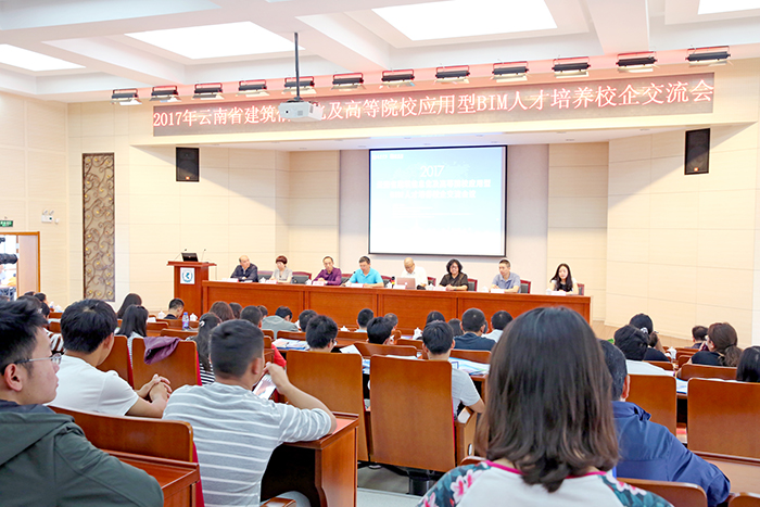 6月24日, 2017年云南省建筑信息化及高等院校应用型BIM人才培养校企交流会议在新葡萄官网召开。学校副校长马银海、云南省工程造价管理协会会长李洪林及秘书长杨敏、云南省建设劳动教育协会会长孙延荣、深圳市斯维尔科技股份有限公司副董事长蒋瑾瑜女士和西南片区经理胡会康等出席会议。会议由城建学院副院长莫南明主持。