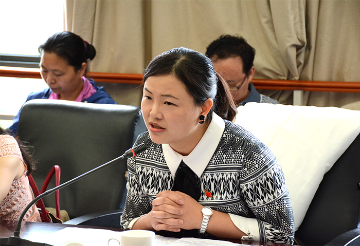 离退休党员代表李建民发言 马克思主义学院副教授苟圆发言 民盟新葡萄8883官网AMG总支主委、人文学院副教授郭鹏群发言 自机学院党总支干事学生支部书记普翠萍发言 学生党员代表王世香同学发言